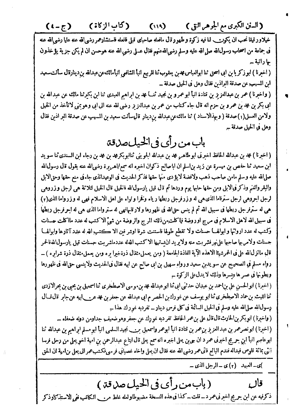 قال (باب من رأى في الخيل صدقة) ذكر فيه عن ابن جريح اخبرني عمرد - قلت - كذا في هذه النسخة مضبوطا ولعله غلط من الكاتب ففي الاستذكار ذكر
