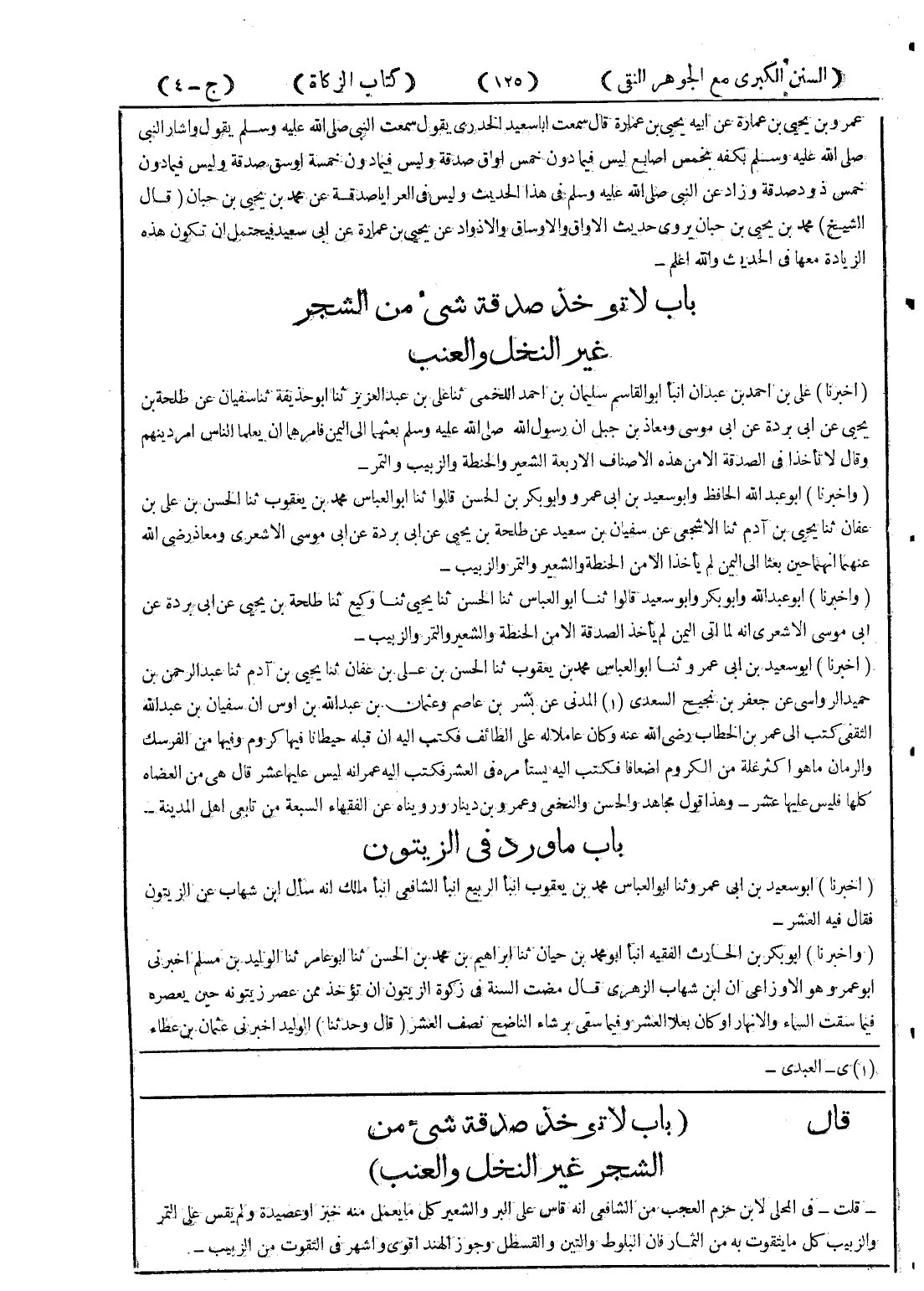 قال (باب لا تؤخذ صدقة صدقة شئ من الشجر غير النخل والعنب) - قلت - في المحلي لابن حزم العجب من الشافعي انه قاس على البر والشعير كل ما يعمل منه خبز أو عصيدة ولم يقس على التمر والزبيب كل ما يتقوت به من الثمار فان البلوط والتين والقسطل وجوز الهند اقوى واشهر في التقوت من الزبيب -