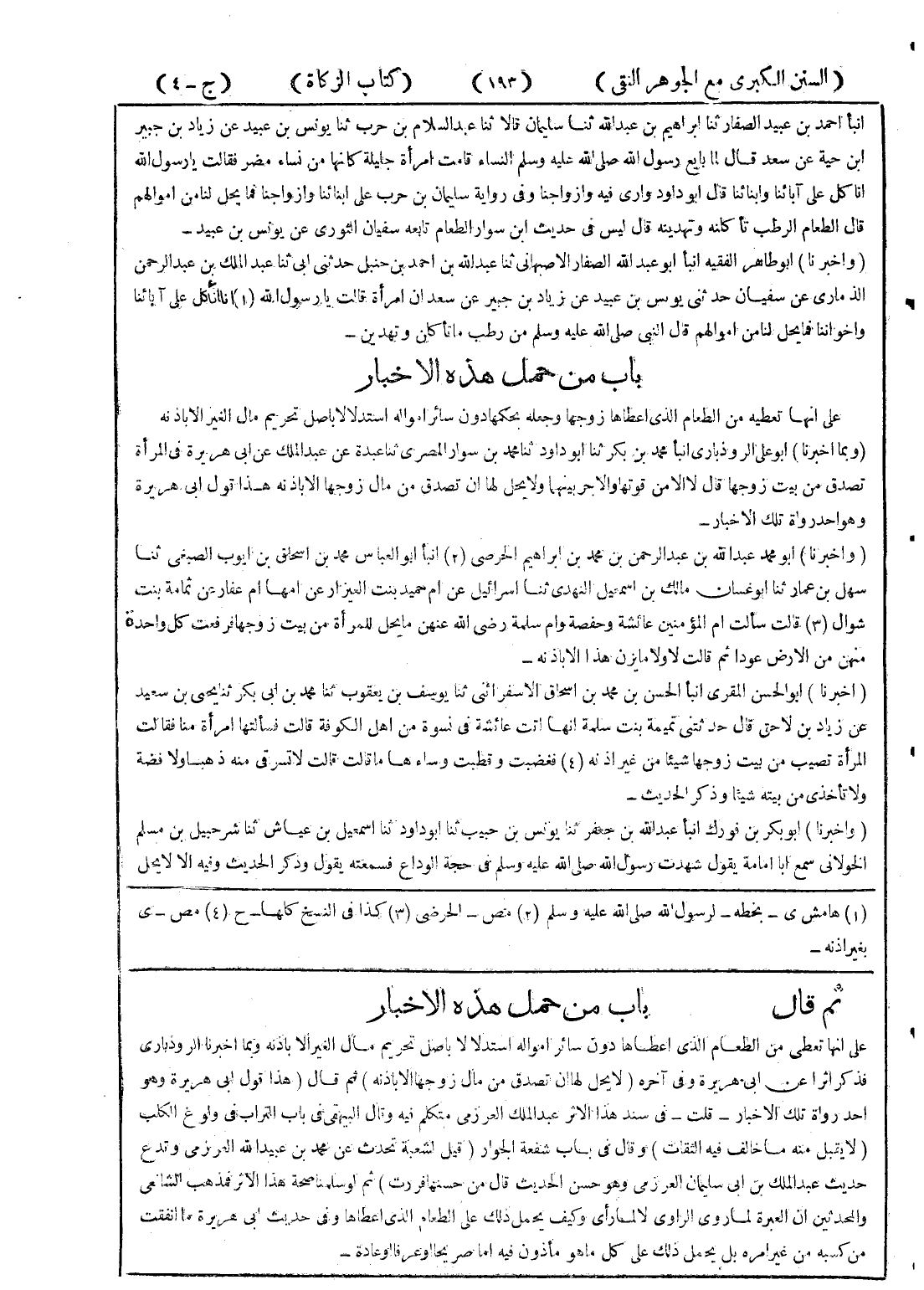 حديث عبد الملك بن ابي سليمان العرزمي وهو حسن الحديث قال من حسنها فررت) ثم لو سلمنا صحة هذا الاثر فمذهب الشافعي والمحدثين ان العبرة لما روى الراوي لا لما رأى وكيف يحمل ذلك على الطعام الذي اعطاها وفي الحديث ابي هريرة ما انفقت من كسبه من غير امره بل يحمل ذلك على كل ما هو مأذون فيه اما صريحا أو عرفا أو عادة -