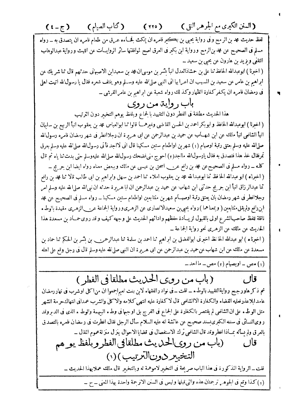 (1) كذا وقع في الجوهر ترجمتان هذه والتي قبلها وليس في السنن الا ترجمة واحدة بهذا المعنى - ح -