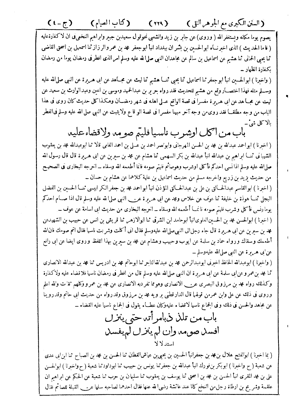 - باب من اكل أو شرب ناسيا فليتم صومه ولاقضاء عليه