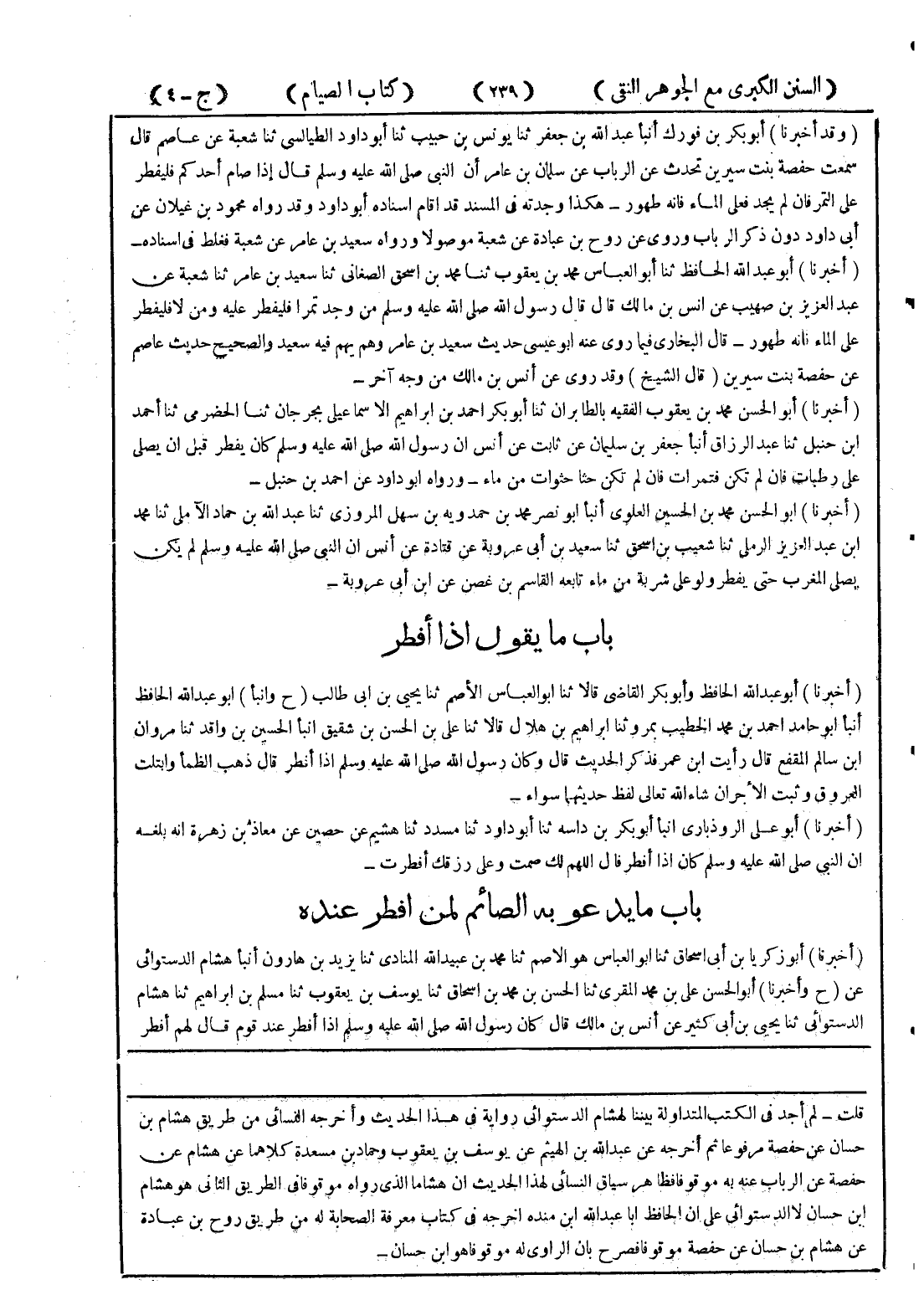 قلت - لم أجد في الكتب المتداولة بيننا لهشام الدستوائي رواية في هذا الحديث وأحرجه النسائي من طريق هشام بن حسان عن حفصة مرفوعا ثم أخرجه عن عبد الله بن الهيثم عن يوسف بن يعقوب وحماد بن مسعدة كلاهما عن هشام عن حفصة عن الرباب عنه به موقوفا فظاهر سياق النسائي لهذا الحديث ان هشاما الذي رواه موقوفا في الطريق الثاني هو هشام ابن حسان لا الدستوائي على ان الحافظ ابا عبد الله ابن منده اخرجه في كتاب معرفة الصحابة له من طريق روح بن عبادة عن هشام بن حسان عن حفصة موقوفا فصرح بان الراوي له موقوفا هو ابن حسان -