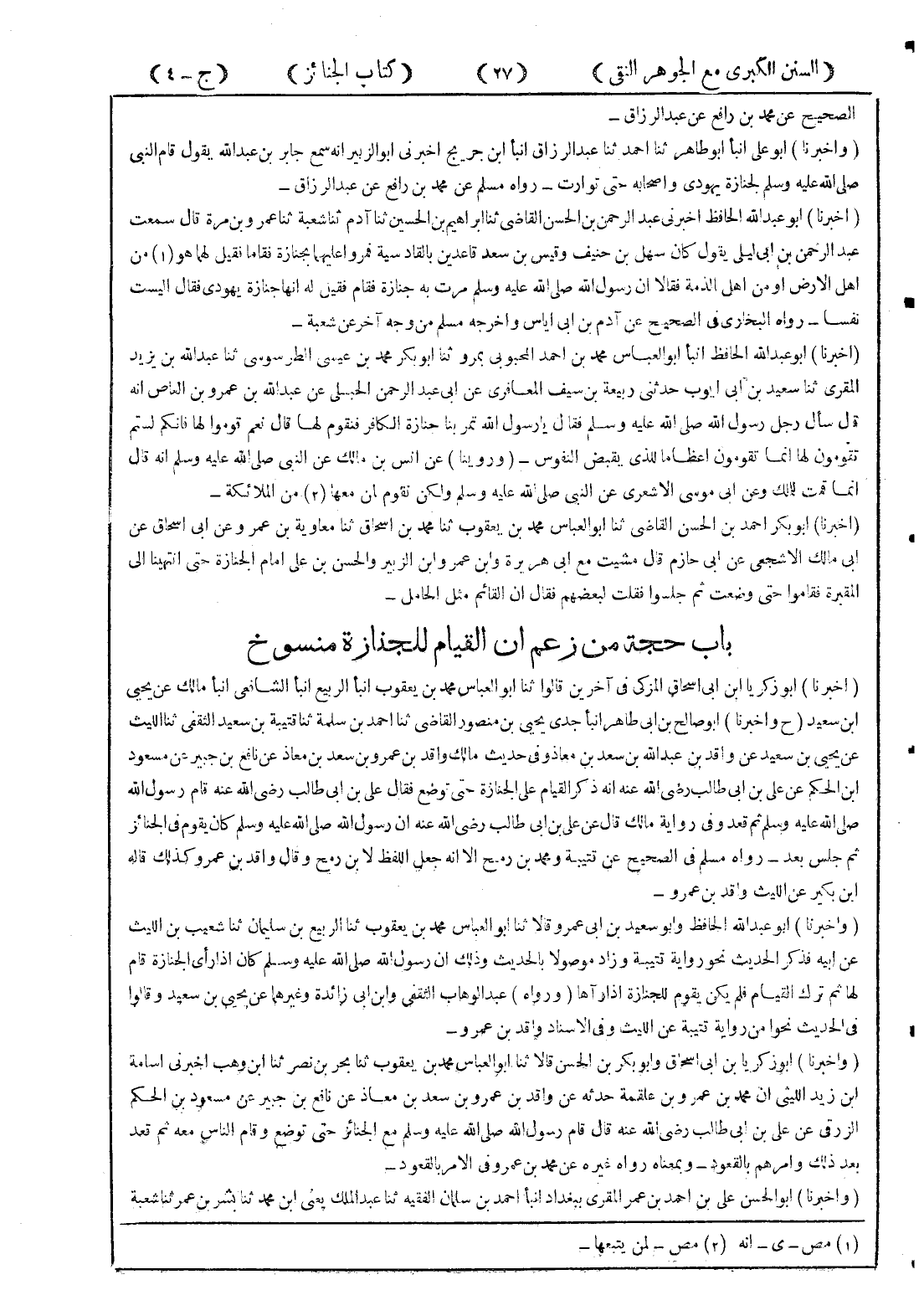 - باب حجة من زعم ان القيام للجنازة منسوخ