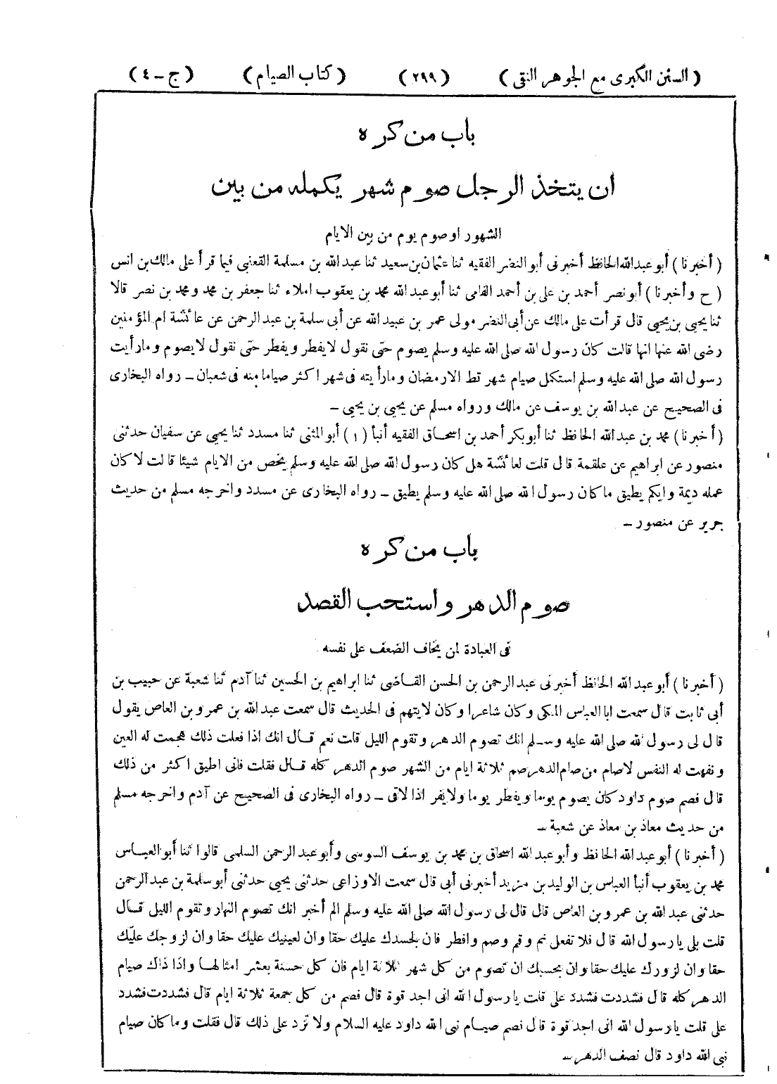 - باب من كره صوم الدهرو استحب القصد في العبادة لمن يخاف الضعف على نفسه