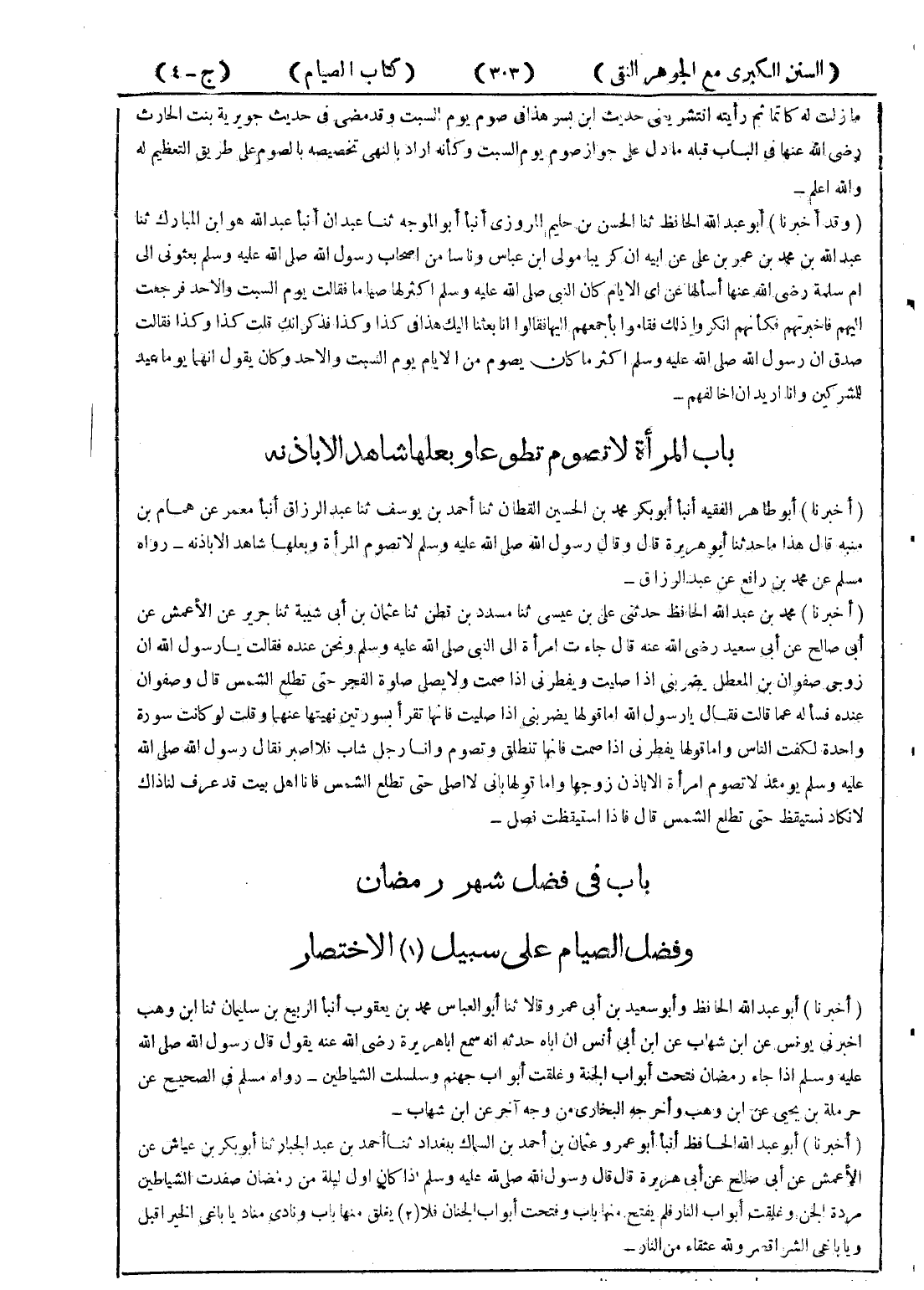 - باب المرأة لا تصوم تطوعا وبعلها شاهد الا باذنه