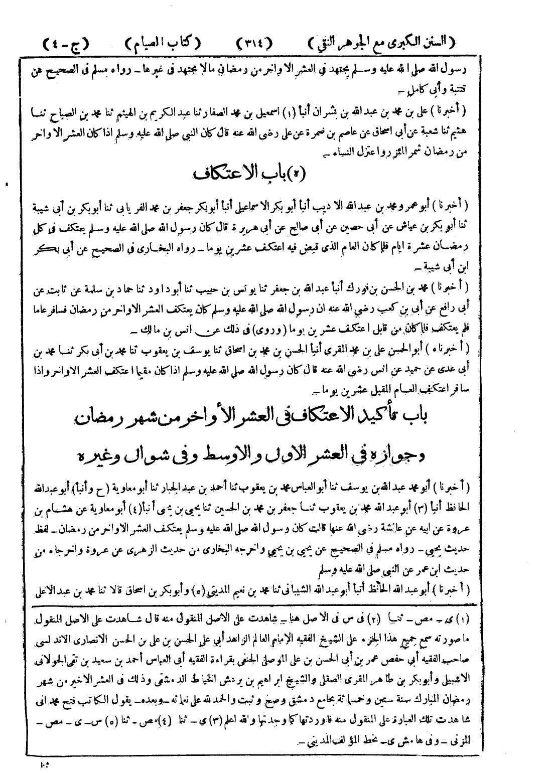 - (أخبرنا) على بن محمد بن عبد الله بن بشران أنبأ (1) اسمعيل بن محمد الصفار ثنا عبد الكريم بن الهيثم ثنا محمد بن الصباح ثنا هشيم ثنا شعبة عن أبى اسحاق عن عاصم بن ضمرة عن على رضى الله عنه قال كان النبي صلى الله عليه وسلم إذا كان العشر الاواخر من رمضان شمرالمئز رواعتزل النساء - (2) باب الاعتكاف