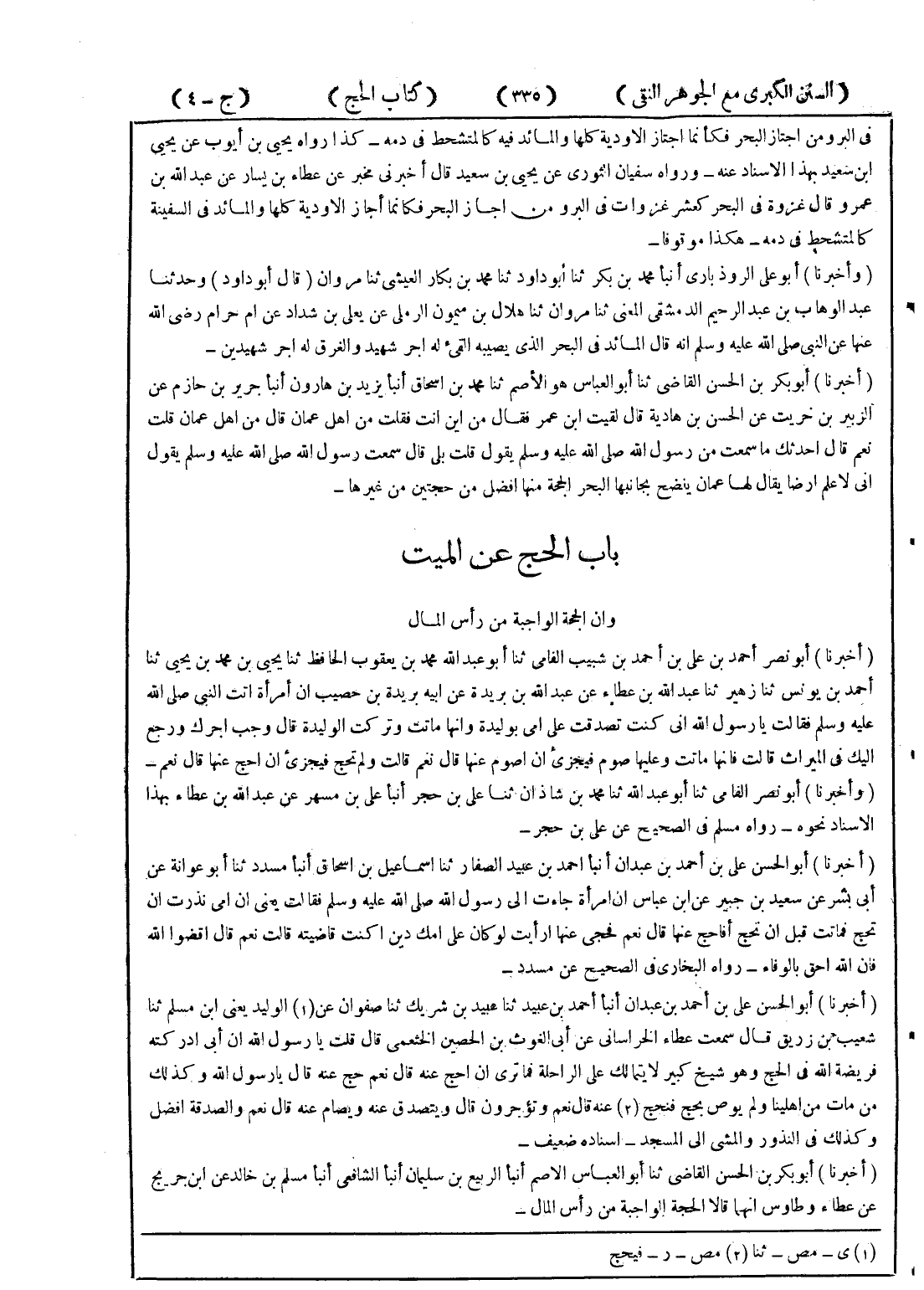 - (أخبرنا) أبو بكر بن الحسن القاضى ثنا أبو العباس الاصم أنبأ الربيع بن سليمان أنبأ الشافعي أنبأ مسلم بن خالد عن ابن جريج عن عطاء وطاوس انهما قالا الحجة الواجبة من رأس المال -
