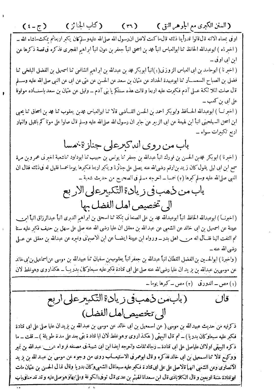 قال (باب من ذهب في زيادة التكبير على اربع إلى تخصيص اهل الفضل)