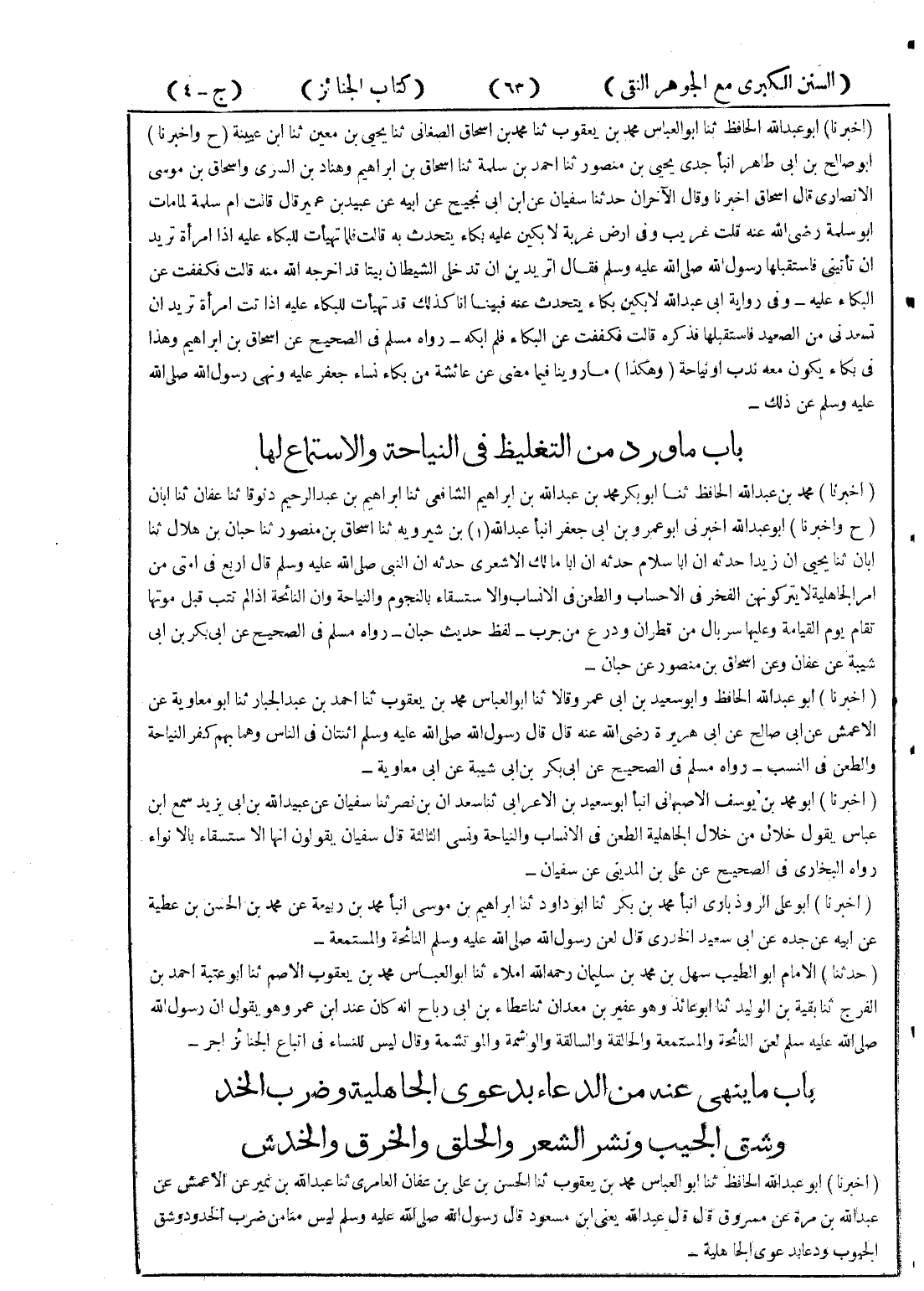 - باب ما ينهى عنه من الدعاء بدعوى الجاهلية وضرب الخد وشق الجيب ونشر الشعر والحلق والخرق والخدش