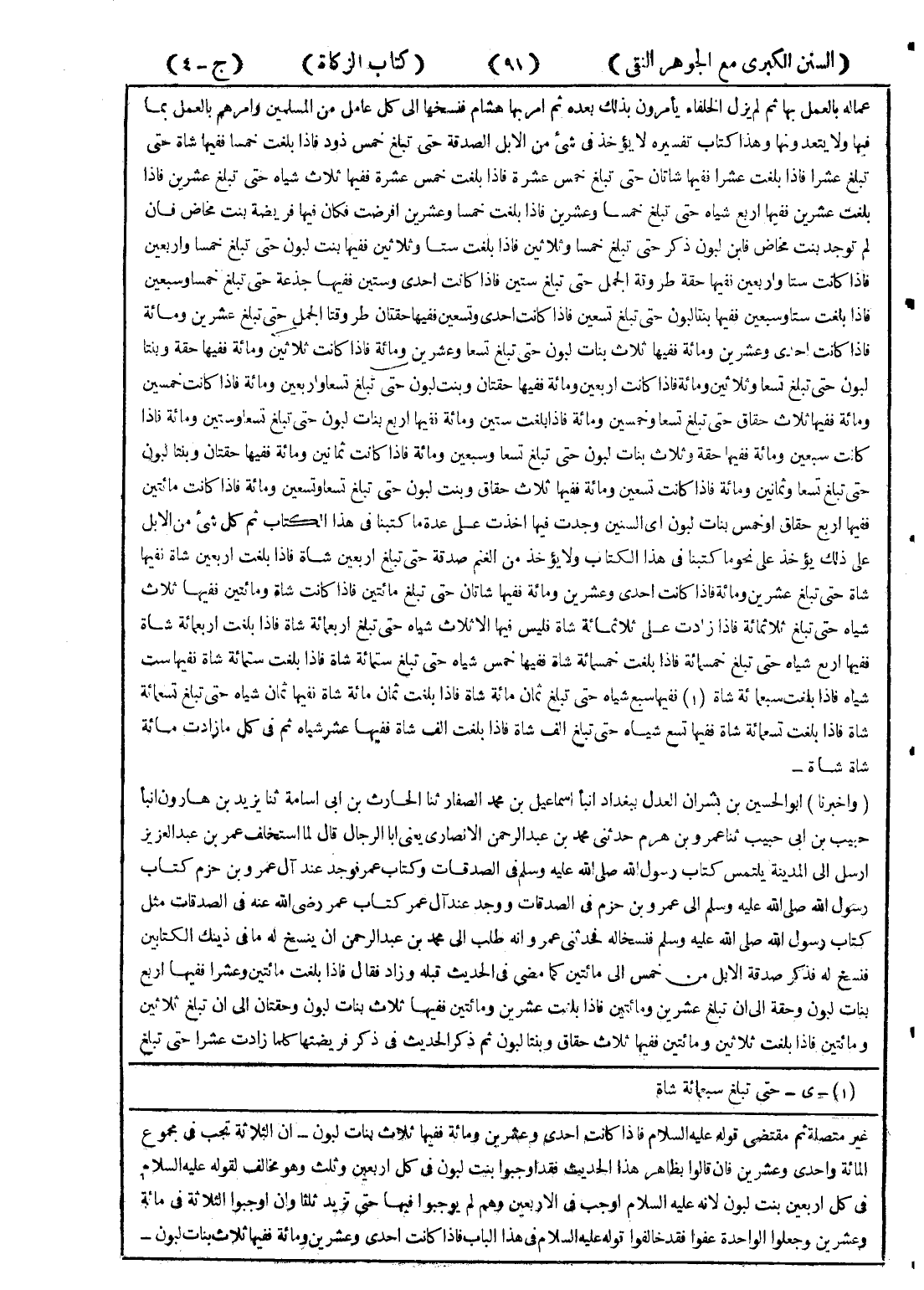 غير متصلة ثم مقتضي قوله عليه السلام فإذا كانت احدى وعشرين ومائة ففيها ثلاث بنات لبون - ان الثلاثة تجب في مجموع المائة واحدى وعشرين فان قالوا بظاهر هذا الحديث فقد اوجبوا بنت لبون في كل اربعين وثلث وهو مخالف لقوله عليه السلام في كل اربعين بنت لبون لانه عليه السلام اوجب في الاربعين وهم لم يوجبوا فيها حتى تزيد ثلثا وان اوجبوا الثلاثة في مائة وعشرين وجعلوا الواحدة عفوا فقد خالفوا قوله عليه السلام في هذا الباب فإذا كانت احدى وعشرين ومائة ففيها ثلاث بنات لبون -
