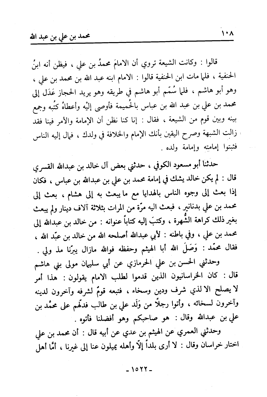 من وراءنا من رجالنا ونحن مِنْ مُلك الدنيا وسعتها فِي خندق. فرحل عَبْد اللَّهِ من خندقه، ونزل أَبُو مُسْلِم رأس العين ثُمَّ انكفأ راجعًا حَتَّى نزل خندق عَبْد اللَّهِ، ونزل عَبْد اللَّهِ خندقه وَقَالَ: إِنَّمَا كَانَتْ هَذِهِ مكيدة من العبد. وكاتَبَ أَبُو مُسْلِم أهل خراسان فانحاز إِلَيْهِ بشر مِنْهُم، ووقعت فِي نفس ابْن عَلِي تهمتهم وسوء الظن بمن بقي مَعَهُ مِنْهُم فأمر حباش بْن حبيب صاحب شرطته فقتل مِنْهُم خلقًا.