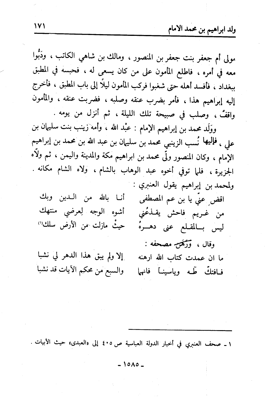 وأظهر بسام الخلاف فانصرف عَنْهُ عامة [1] جنده (611) وأتى قرقيسيا، فكتب (ابْن) [2] عَلِي بخبره إِلَى أَبِي الْعَبَّاس، ثُمَّ أتى المدائن فِي جمع فوجه إليْه أَبُو الْعَبَّاس خازم بْن خزيمة فقاتله فانهزم بسام وصار إِلَى السوس وتفرق عَنْهُ أَصْحَابه، ثُمَّ مضى إِلَى ماه [3] وخازم يتبعه، ثُمَّ توارى وكتب إِلَى جَعْفَر بْن مُحَمَّد بْن عَلِيّ بْن الْحُسَيْن: إِن أجبتني ضربت بَيْنَ أَهْل خراسان وبايعتُ لَك، فخاف جَعْفَر أَن يَكُون أَبُو الْعَبَّاس دس الكتاب إِلَيْهِ فأتى أبا الْعَبَّاس بكتاب بسام، فَقَالَ: أَحْسَن اللَّه جزاءك يَا ابْن عم، اكتب إِلَيْهِ فواعده مكانًا يلقاك فِيهِ، فواعده الحيرة ووجه إِلَيْهِ بِذَلِك ابنه 225/ 4 إِسْمَاعِيل بْن جَعْفَر، وأمر أَبُو الْعَبَّاس أبا غسان مولاه وحاجبه بتفقده ومراعاته، فلما رآه أَبُو غسان مَعَ إِسْمَاعِيل بْن جَعْفَر عرف أَنَّهُ بسام وَكَانَ عَلَيْهِ سواد بلا سَيْف، فَقَالَ لَهُ: من أَنْتَ؟ قَالَ لَهُ: رَجُل من أَهْل الجزيرة من الْعِبَاد، فرفع أَبُو غسان عَلَيْهِ العمود، فشتمه بسام وَقَالَ: لو كَانَ معي سَيْفي مَا اجترأت أَن ترفع عَلِي عمودك، فأخذه وأتى بِهِ أبا الْعَبَّاس، فأمر به فقطعت يداه ورجلاه ثم صلب.
