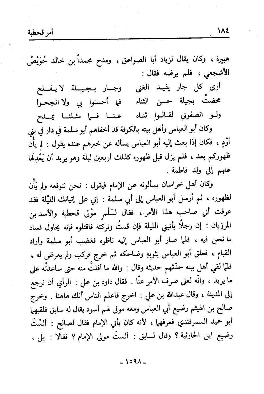 حَدَّثَنِي عُمَرُ [1] بْنُ بُكَيْرٍ عَنِ الْهَيْثَمِ بْنِ عدي وغيره، أَن أبا مُسْلِم كتب إِلَى أَبِي الْعَبَّاس يستأذنه فِي الحج، فكتب إِلَيْهِ: إِن الجهاد أفضل من الحج، فكتب: