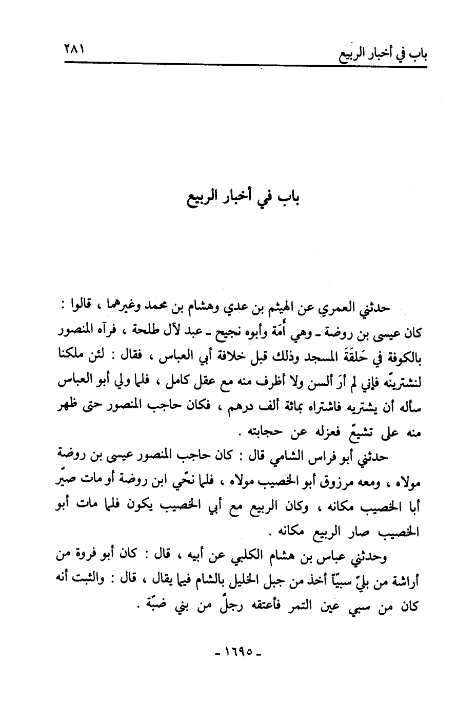 فَهُوَ صاحب العباسية ببغداد، ولاه الْمَنْصُور الجزيرة وأعمالًا سواها وَمَاتَ ببغداد، وَكَانَ يكنى أبا الفضل. وكان الأعراب قد
