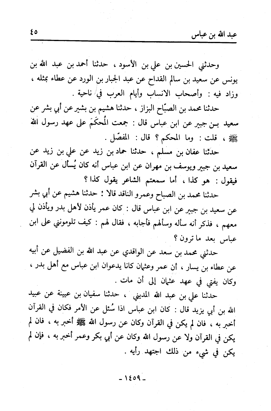 حَدَّثَنِي الْوَلِيدُ بْنُ صَالِحٍ عَنِ الْفَيَّاضِ بْنِ مُحَمَّدٍ عَنْ عَمْرِو بْنِ عِيسَى أَنَّهُ بَلَغَهُ عَنْ وَبَرَةَ بْنِ عَبْدِ الرَّحْمَنِ الْمُسْلِيِّ [2] أَنَّهُ قَالَ، قَالَ ابْنُ عَبَّاسٍ: إِيَّاكَ وَالْكَلامَ فِيمَا يَعْنِيكَ إِذَا كَانَ فِي غَيْرِ مَوْضِعِهِ، وَلا تُمَارِ سَفِيهًا وَلا حَلِيمًا، فَإِنَّ السَّفِيهَ يُؤْذِيكَ وَإِنَّ الْحَلِيمَ يُقْلِيكَ، وَاذْكُرْ أَخَاكَ فِي غِيبَتِهِ بِمَا تُحِبُّ أَنْ يَذْكُرَكَ بِهِ، وَدَعْهُ مِمَّا تُحِبُّ أَنْ يَدَعَكَ مِنْهُ.