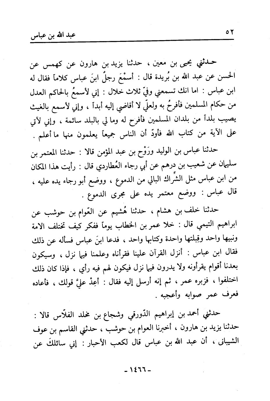 حَدَّثَنِي أَبُو عَمْرَ الْعُمَرِيُّ عَنْ هِشَامِ بْنِ الْكَلْبِيِّ عَنْ المساحقي عَنْ أَبِيهِ، أَنَّ ابْنَ عَبَّاسٍ كَانَ يَقُولُ: إِذَا تَرَكَ الْعَالِمُ قَوْلَ لا أَدْرِي أُصِيبَتْ مَقَاتِلُهُ.