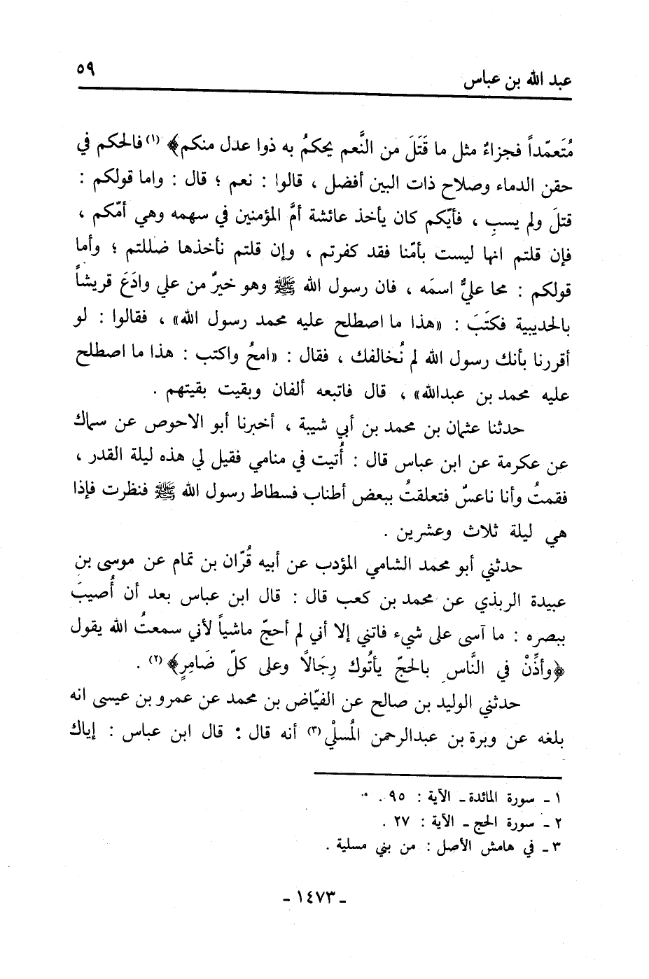 [2] يكرر ط هذه الرواية مع اختلاف بسيط كما يلي: «وقال الواقدي: حدثني ابن جعدة عن صالح ابن كيسان قال: وكان ... ،... من شرك في قبر ... واقام للناس الحج ... »