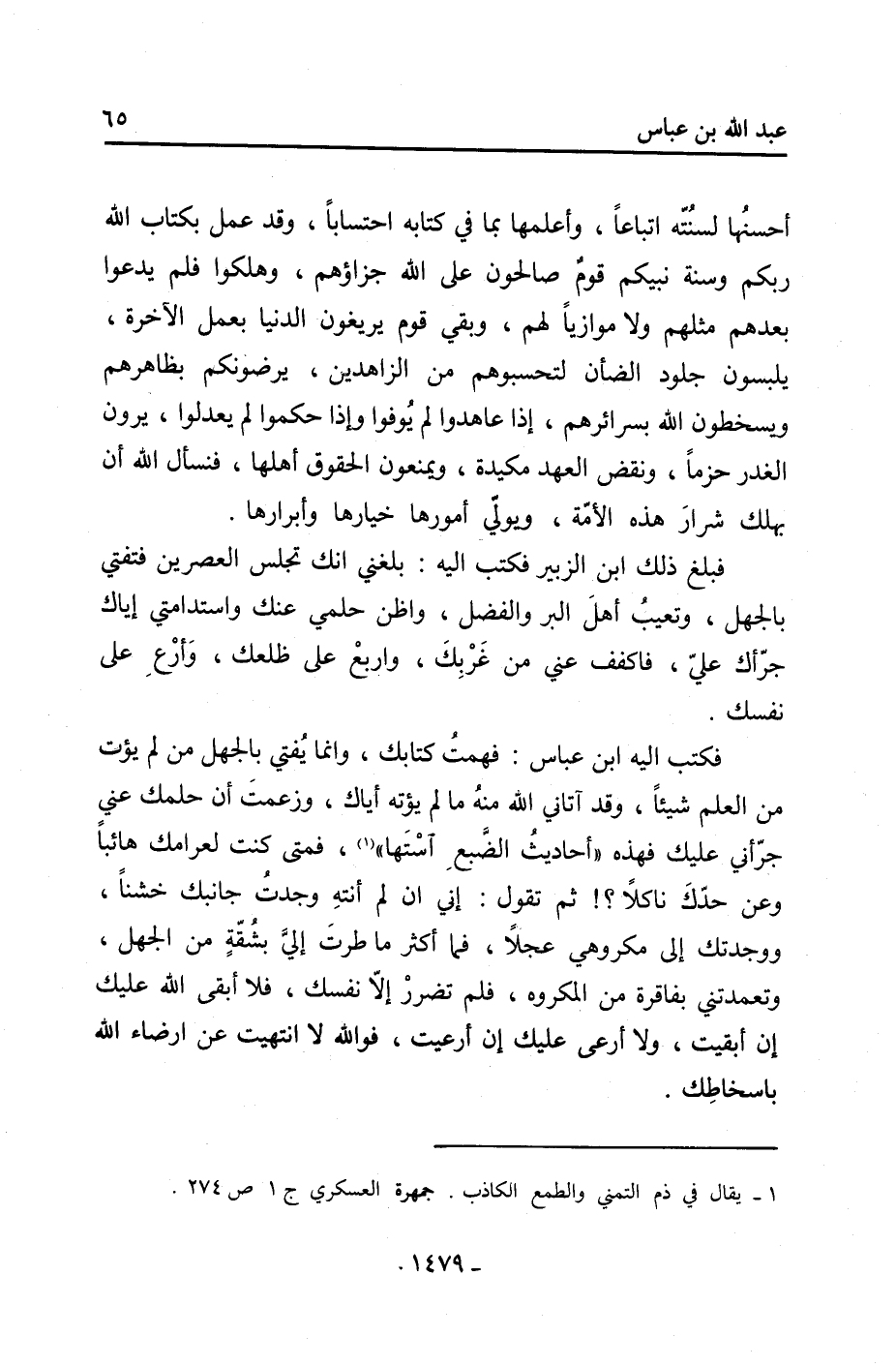 وَقَالَ الْكَلْبِيُّ: ولي عَلِي بْن أَبِي طَالِب قثم بْن الْعَبَّاس مَكَّة، وَهُوَ كَانَ عامله عَلَيْهَا وعلى الموسم فِي سنة تسع وثلاثين حِينَ وجه مُعَاوِيَة يَزِيد بْن شجرة الرُّهاوي لإقامة الحج وأخذ البيعة لَهُ، فقام قثم خطيبًا حِينَ بلغه إقبال ابْن شجرة، فَحَمِدَ اللَّه وَأَثْنَى عَلَيْهِ وَصَلَّى عَلَى نَبِيِّهِ صَلَّى الله عليه وسلم ثُمَّ قَالَ: أما بَعْد فَإِنَّهُ قَدْ أقبل إليكم جيش من الشام عظيم، وَقَدْ أظلكم، فَإِن كنتم عَلَى طاعتكم وبيعتكم فانهضوا (558) معي إليهم حَتَّى أناجزهم، فَإِن كنتم غَيْر فاعلين فأبينوا لي امركم ولا تغرّوني من أنفسكم، فَإِن الغرور حيفٌ يضل مَعَهُ الرأي ويصرع بِهِ الأريب.