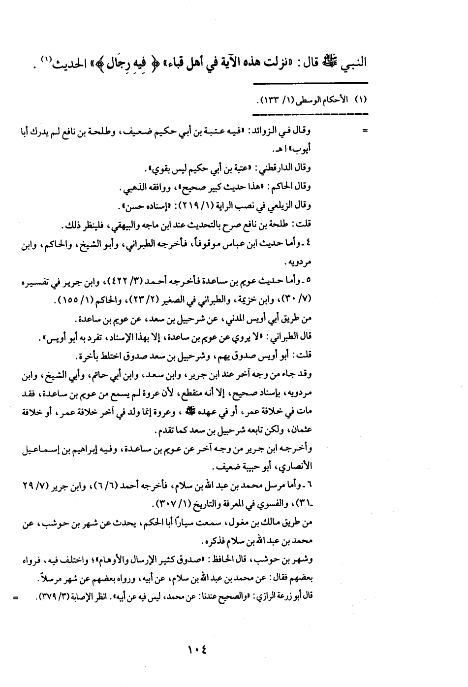النَّبِي - صَلَّى اللَّهُ عَلَيْهِ وَسَلَّم َ - قَالَ: " نزلت هَذِه الْآيَة فِي أهل قبَاء " {فِيهِ رجال} الحَدِيث.