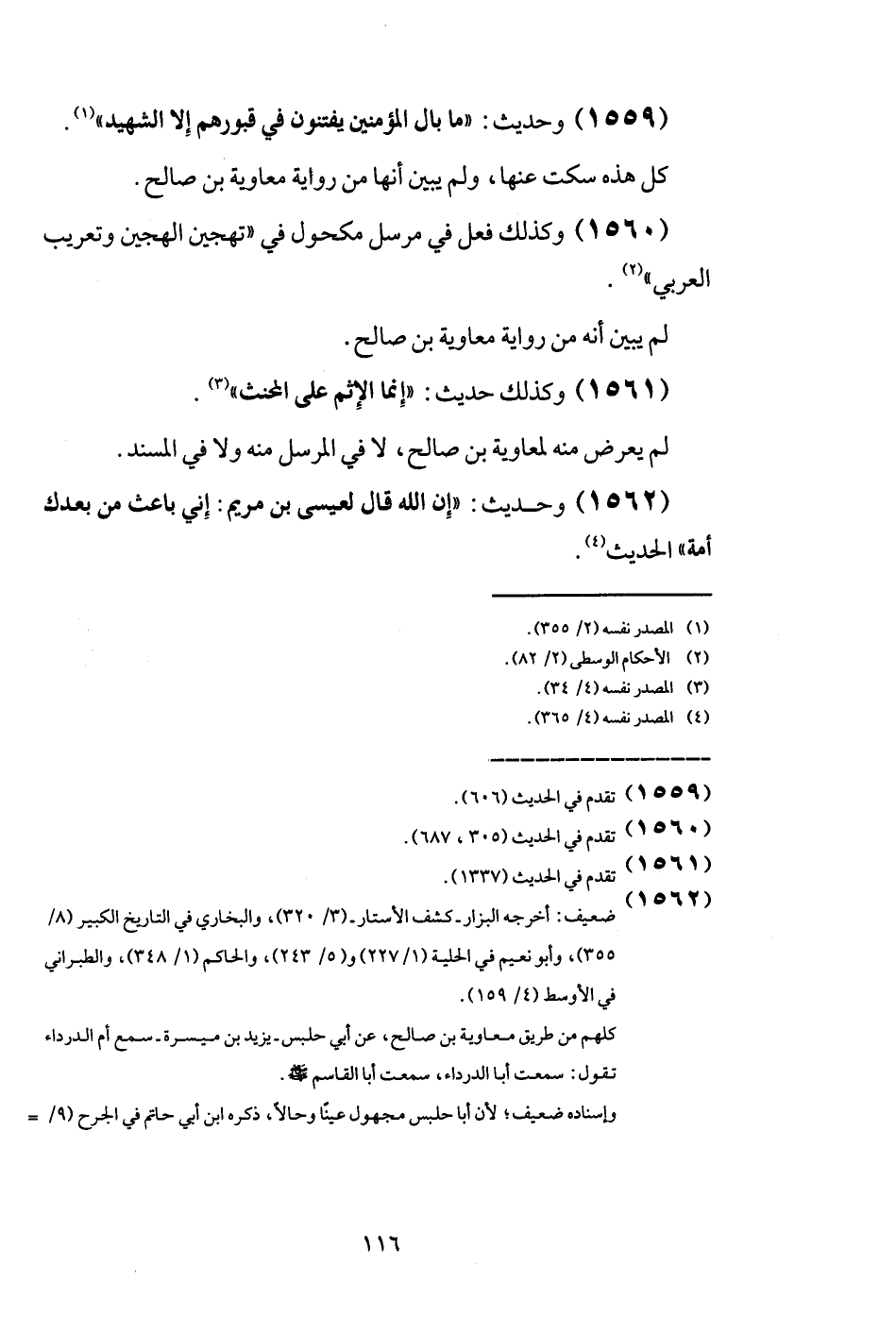 (1559) وَحَدِيث: " مَا بَال الْمُؤمنِينَ يفتنون فِي قُبُورهم إِلَّا الشَّهِيد ".