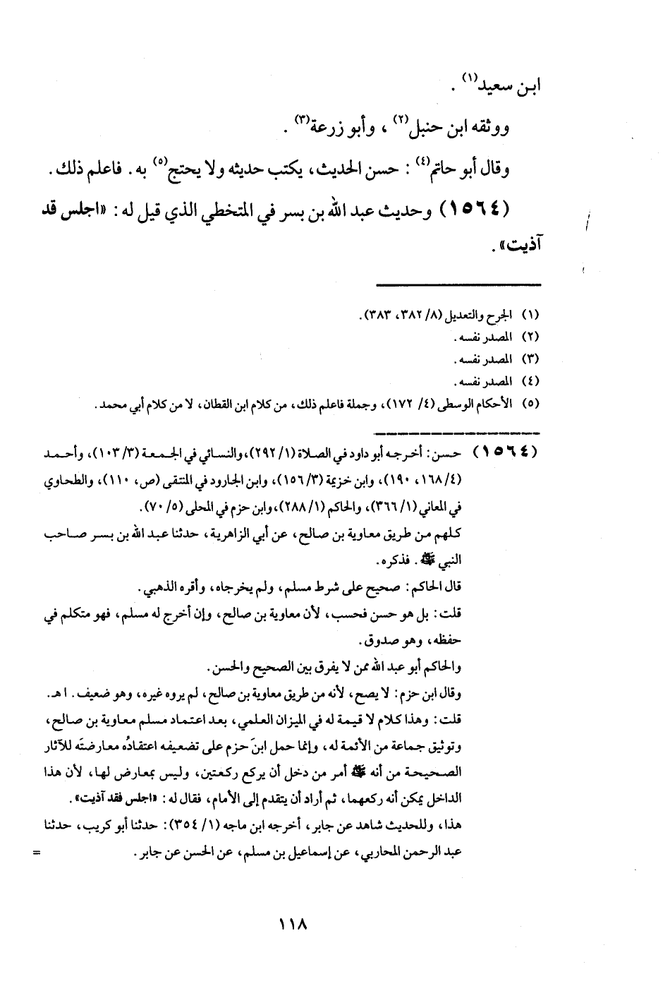 (1564) وَحَدِيث عبد الله بن بسر فِي المتخطي الَّذِي قيل لَهُ: " اجْلِسْ قد آذيت ".