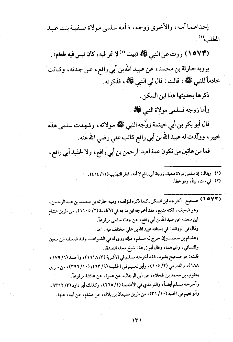 (1573) رَوَت عَن النَّبِي - صَلَّى اللَّهُ عَلَيْهِ وَسَلَّم َ - " بَيت لَا تمر فِيهِ، كَأَن لَيْسَ فِيهِ طَعَام ".