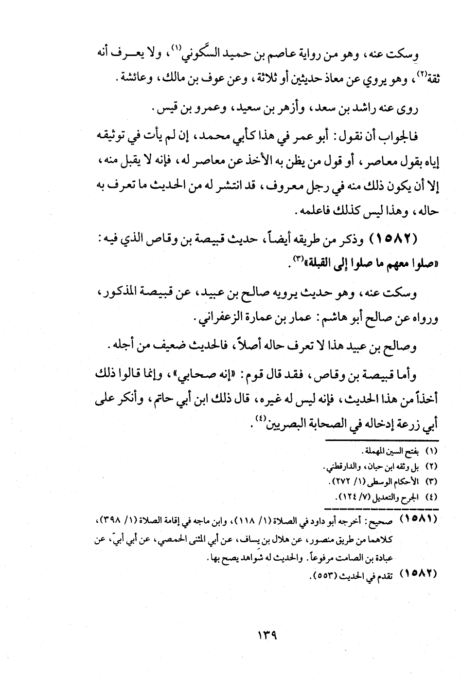 (1582) وَذكر من طَرِيقه أَيْضا، حَدِيث قبيصَة بن وَقاص الَّذِي فِيهِ: " صلوا مَعَهم مَا صلوا إِلَى الْقبْلَة ".
