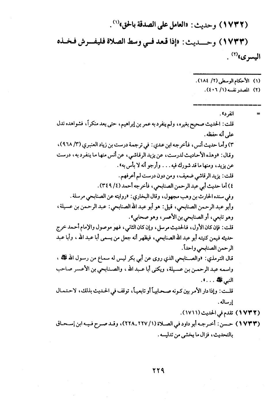 (1733) وَحَدِيث: " إِذا قعد فِي وسط الصَّلَاة فليفرش فَخذه الْيُسْرَى ".