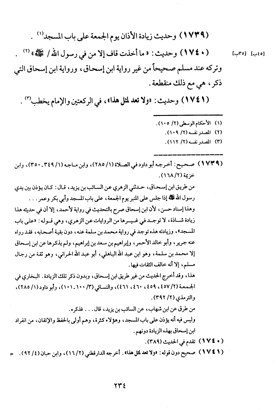 (1739) وَحَدِيث زِيَادَة الْأَذَان يَوْم الْجُمُعَة على بَاب الْمَسْجِد.