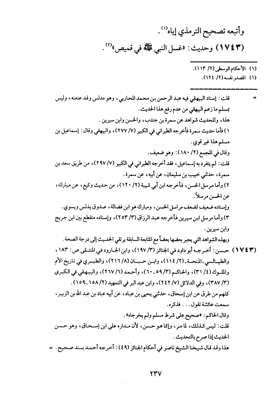 (1743) وَحَدِيث: " غسل النَّبِي - صَلَّى اللَّهُ عَلَيْهِ وَسَلَّم َ - فِي قَمِيص ".