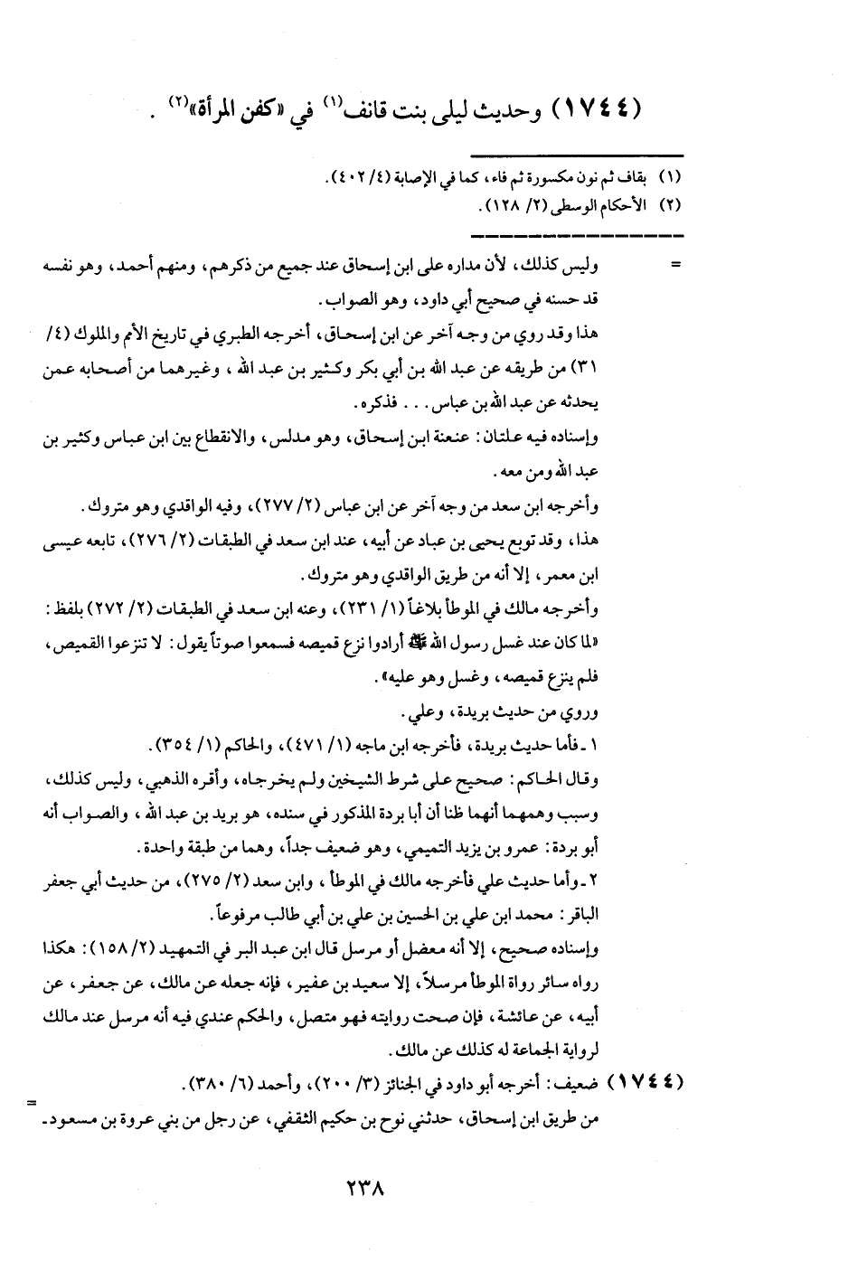 (1744) وَحَدِيث ليلى بنت قانف فِي " كفن الْمَرْأَة ".