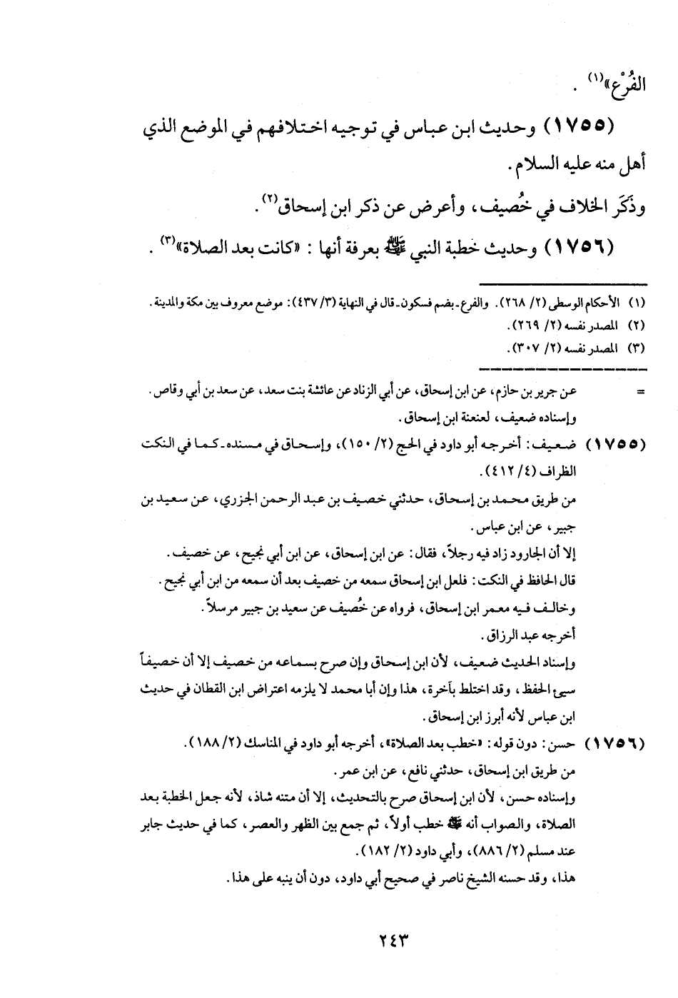 (1755) وَحَدِيث ابْن عَبَّاس فِي تَوْجِيه اخْتلَافهمْ فِي الْموضع الَّذِي أهل مِنْهُ عَلَيْهِ السَّلَام. وَذكر الْخلاف فِي خصيف، وَأعْرض عَن ذكر ابْن إِسْحَاق.