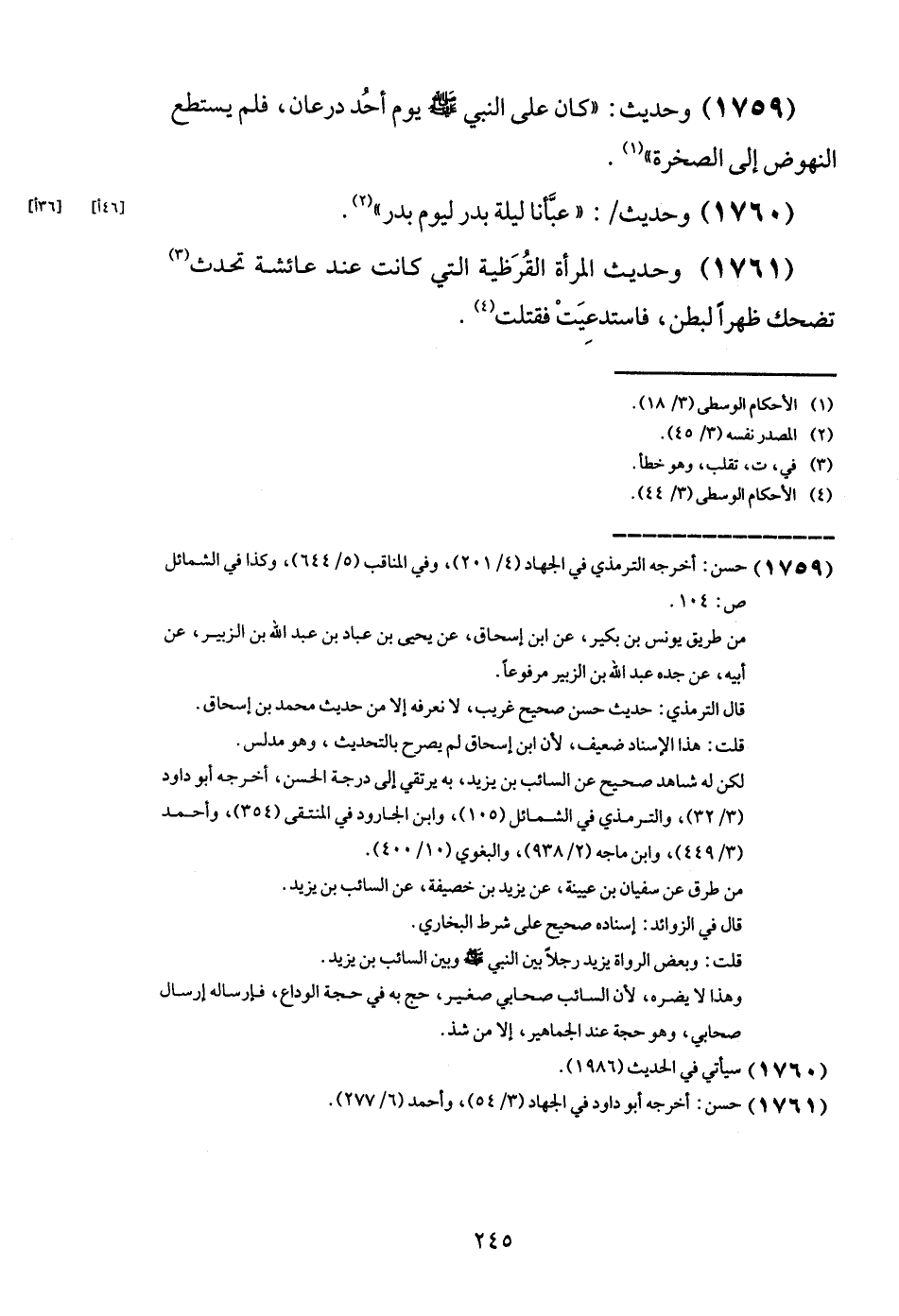 (1759) وَحَدِيث: " كَانَ على النَّبِي - صَلَّى اللَّهُ عَلَيْهِ وَسَلَّم َ - يَوْم أحد دِرْعَانِ، فَلم يسْتَطع النهوض إِلَى الصَّخْرَة ".