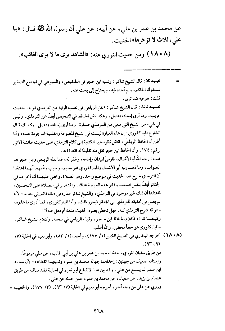 (1808) وَمن حَدِيث الثَّوْريّ عَنهُ: " الشَّاهِد يرى مَا لَا يرى الْغَائِب ".