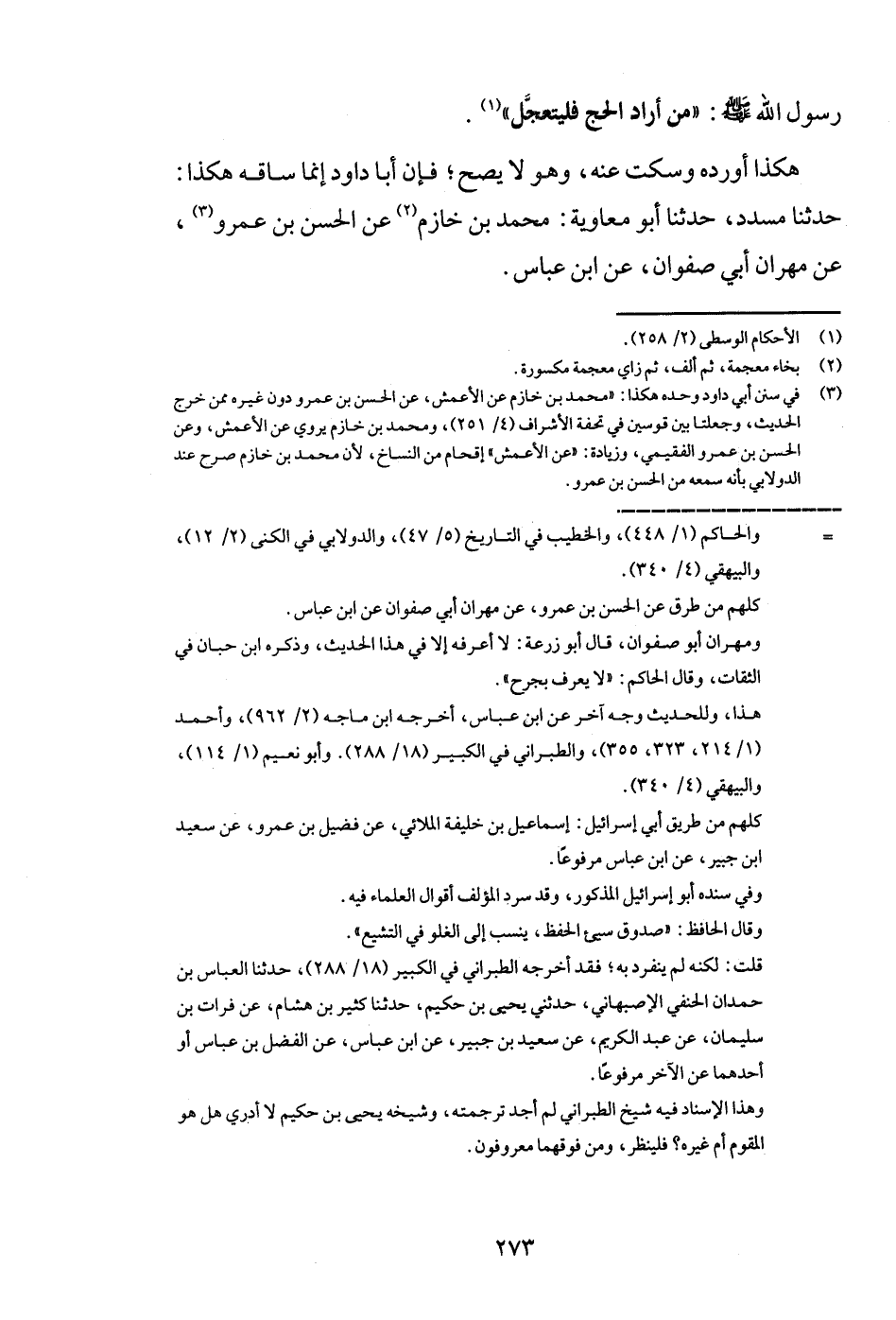 رَسُول الله - صَلَّى اللَّهُ عَلَيْهِ وَسَلَّم َ -: " من أَرَادَ الْحَج فَليَتَعَجَّل ".