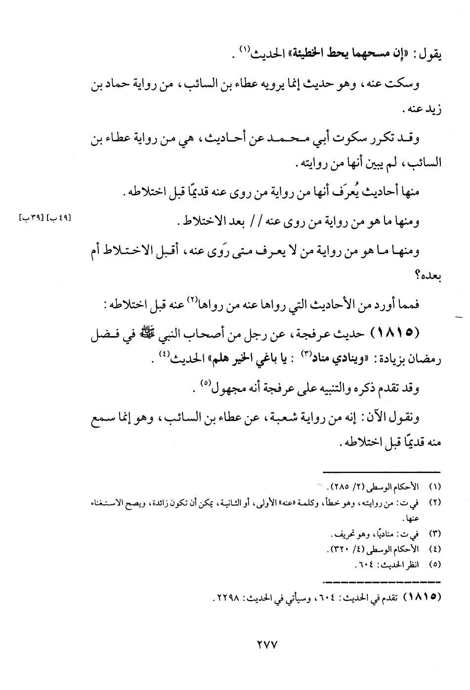 ونقول الْآن: إِنَّه من رِوَايَة شُعْبَة، عَن عَطاء بن السَّائِب، وَهُوَ إِنَّمَا سمع مِنْهُ قَدِيما قبل اخْتِلَاطه.