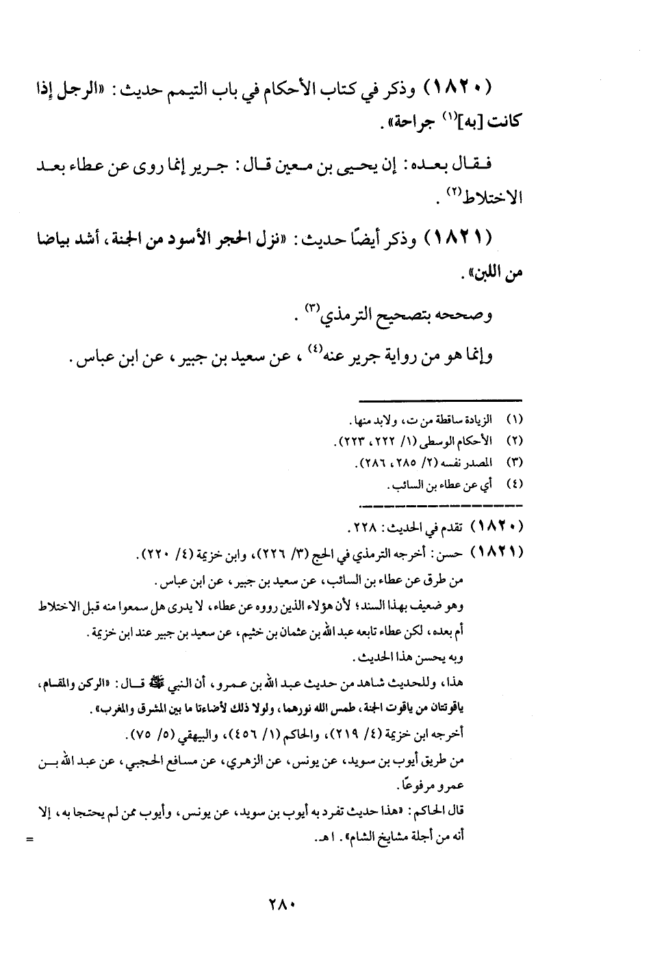 (1821) وَذكر أَيْضا حَدِيث: " نزل الْحجر الْأسود من الْجنَّة، أَشد بَيَاضًا من اللَّبن ".
