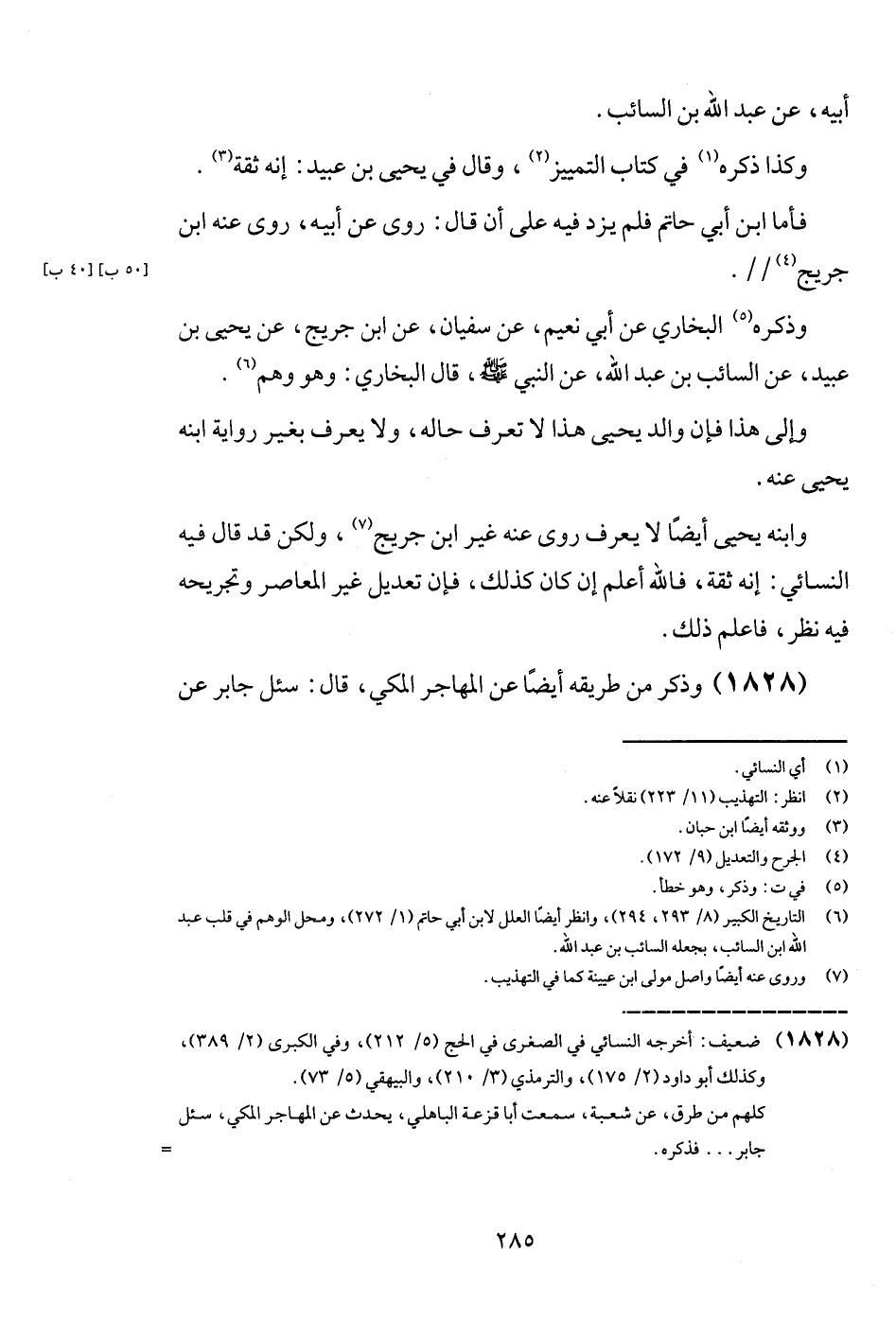 (1828) وَذكر من طَرِيقه أَيْضا عَن المُهَاجر الْمَكِّيّ، قَالَ: سُئِلَ جَابر عَن