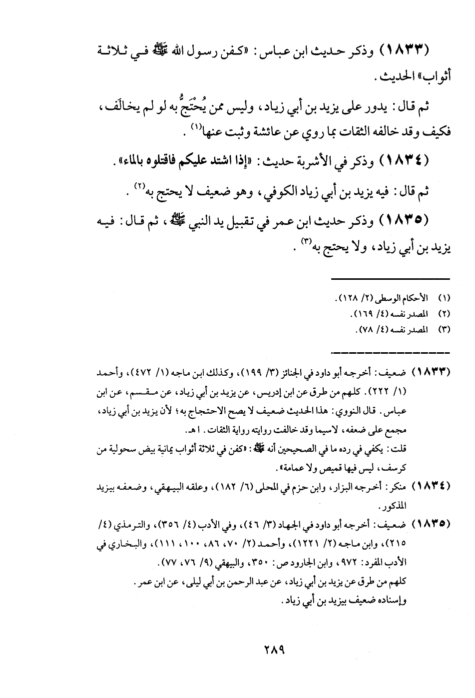 ثمَّ قَالَ: يَدُور على يزِيد بن أبي زِيَاد، وَلَيْسَ مِمَّن يحْتَج بِهِ لَو لم يُخَالف، فَكيف وَقد خَالفه الثِّقَات بِمَا روى عَن عَائِشَة وَثَبت عَنْهَا.