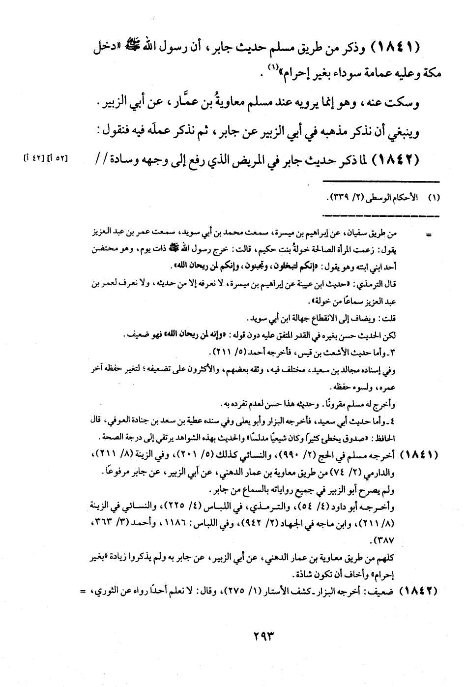 (1841) وَذكر من طَرِيق مُسلم حَدِيث جَابر، أَن رَسُول الله - صَلَّى اللَّهُ عَلَيْهِ وَسَلَّم َ - " دخل مَكَّة وَعَلِيهِ عِمَامَة سَوْدَاء بِغَيْر إِحْرَام ".