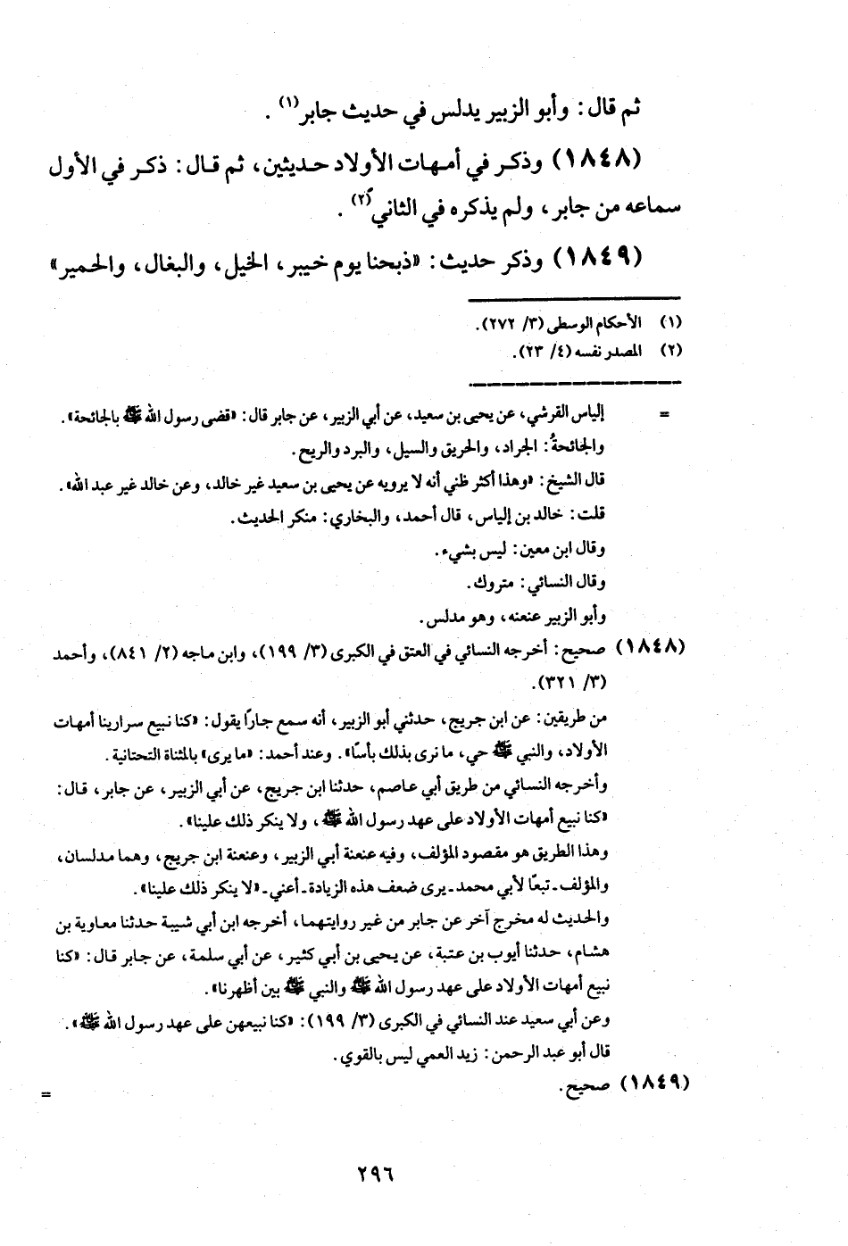 (1848) وَذكر فِي أُمَّهَات الْأَوْلَاد حديثين، ثمَّ قَالَ: ذكر فِي الأول سَمَاعه من جَابر، وَلم يذكرهُ فِي الثَّانِي.