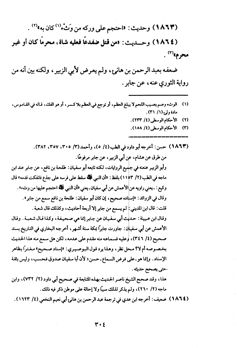 ضعفه بِعَبْد الرَّحْمَن بن هَانِئ، وَلم يعرض لأبي الزبير، وَلكنه بَين أَنه من رِوَايَة الثَّوْريّ عَنهُ، عَن جَابر.
