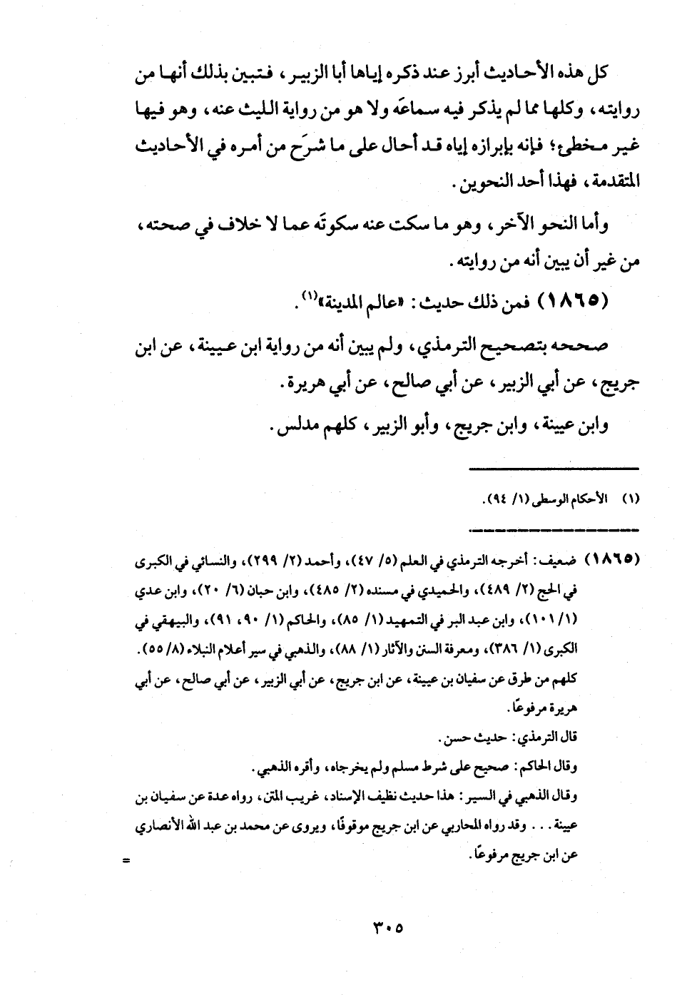 (1865) فَمن ذَلِك حَدِيث: " عَالم الْمَدِينَة ".