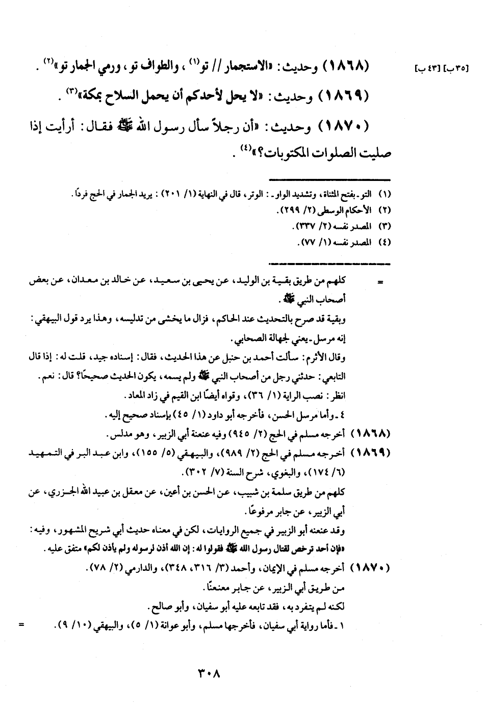 (1869) وَحَدِيث: " لَا يحل لأحدكم أَن يحمل السِّلَاح بِمَكَّة ".