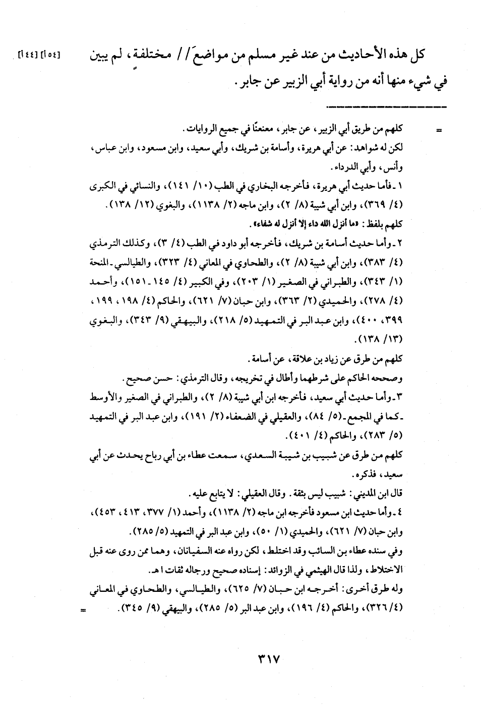 كل هَذِه الْأَحَادِيث من عِنْد غير مُسلم من مَوَاضِع مُخْتَلفَة، لم يبين فِي شَيْء مِنْهَا أَنه من رِوَايَة أبي الزبير عَن جَابر.