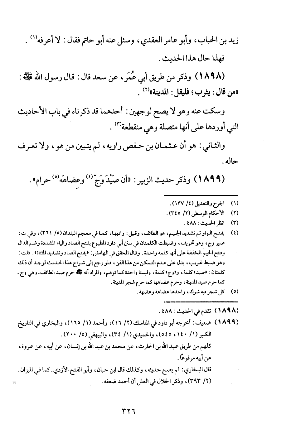 (1899) وَذكر حَدِيث الزبير: " أَن صيد وَج وعضاهه حرَام ".