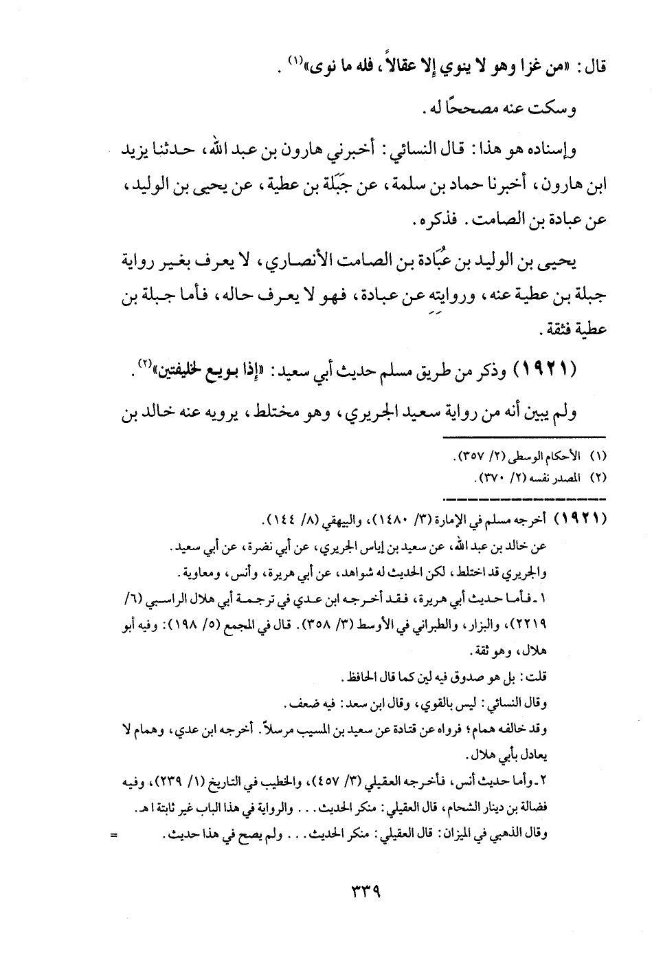 (1921) وَذكر من طَرِيق مُسلم حَدِيث أبي سعيد: " إِذا بُويِعَ لخليفتين ".