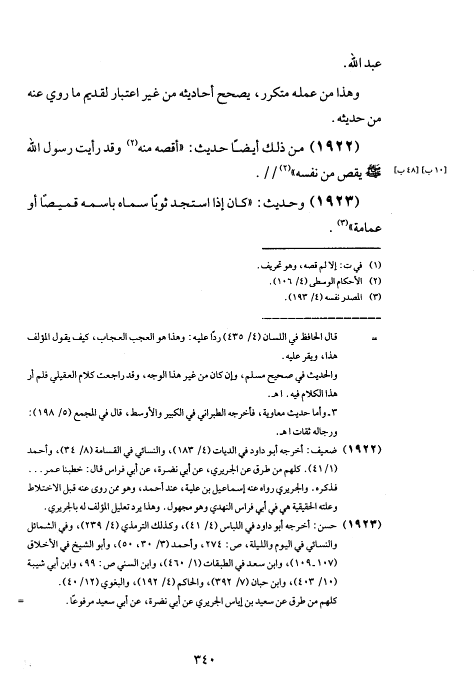 (1923) وَحَدِيث: " كَانَ إِذا استجد ثوبا سَمَّاهُ باسمه قَمِيصًا أَو عِمَامَة ".