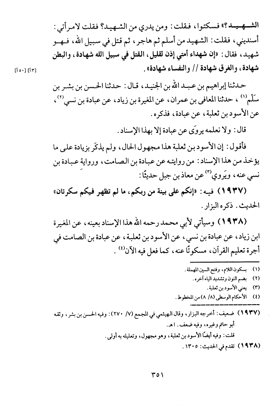 (1938) وَسَيَأْتِي لأبي مُحَمَّد رَحمَه الله هَذَا الْإِسْنَاد بِعَيْنِه، عَن الْمُغيرَة ابْن زِيَاد، عَن عبَادَة بن نسي، عَن الْأسود بن ثَعْلَبَة، عَن عبَادَة بن الصَّامِت فِي أُجْرَة تَعْلِيم الْقُرْآن، مسكوتا عَنهُ، كَمَا فعل فِيهِ الْآن.
