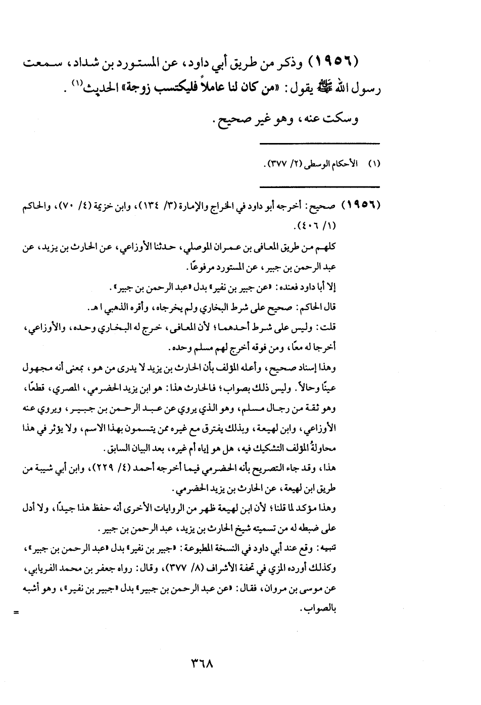 (1956) وَذكر من طَرِيق أبي دَاوُد، عَن الْمُسْتَوْرد بن شَدَّاد، سَمِعت رَسُول الله - صَلَّى اللَّهُ عَلَيْهِ وَسَلَّم َ - يَقُول: " من كَانَ لنا عَاملا فليكتسب زَوْجَة " الحَدِيث.